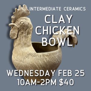For intermediate ceramics folks only. You MUST bring an already wheel thrown or hand built bowl that is still pretty soft, not quite leatherhard. See how to alter the bowl through shaping and creating darts, then using other handbuilding techniques to sculpt and attach the head and tail. Finish with some loop tools to give feather texture. We’ll go through step by step as a group with lots of working time in between. BYOB (bring your own clay) any of the Warehouse clay bodies will be fine to use during this class. McCall recommends a larger bowl (4-5 lbs) but you could also do a few smaller ones as well during this time. If you have questions about size, please ask her. If you are not a member of Open Studio but would still like to take this class, please call to the Warehouse ahead of time to figure something out.