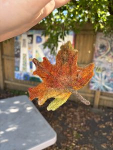 Follow along learning needle felting while sculpting wool fiber into vibrant fall leaf ornament!