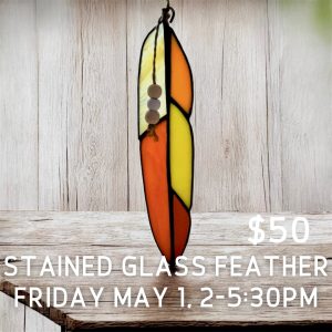 Create a stained glass feather to hang beautifully in a window. Learn to cut, fit, and solder stained glass using the lead foil technique. Choose all your own colors and go home with a finished product. This class is open to all skill levels, including beginners, though some experience will help.